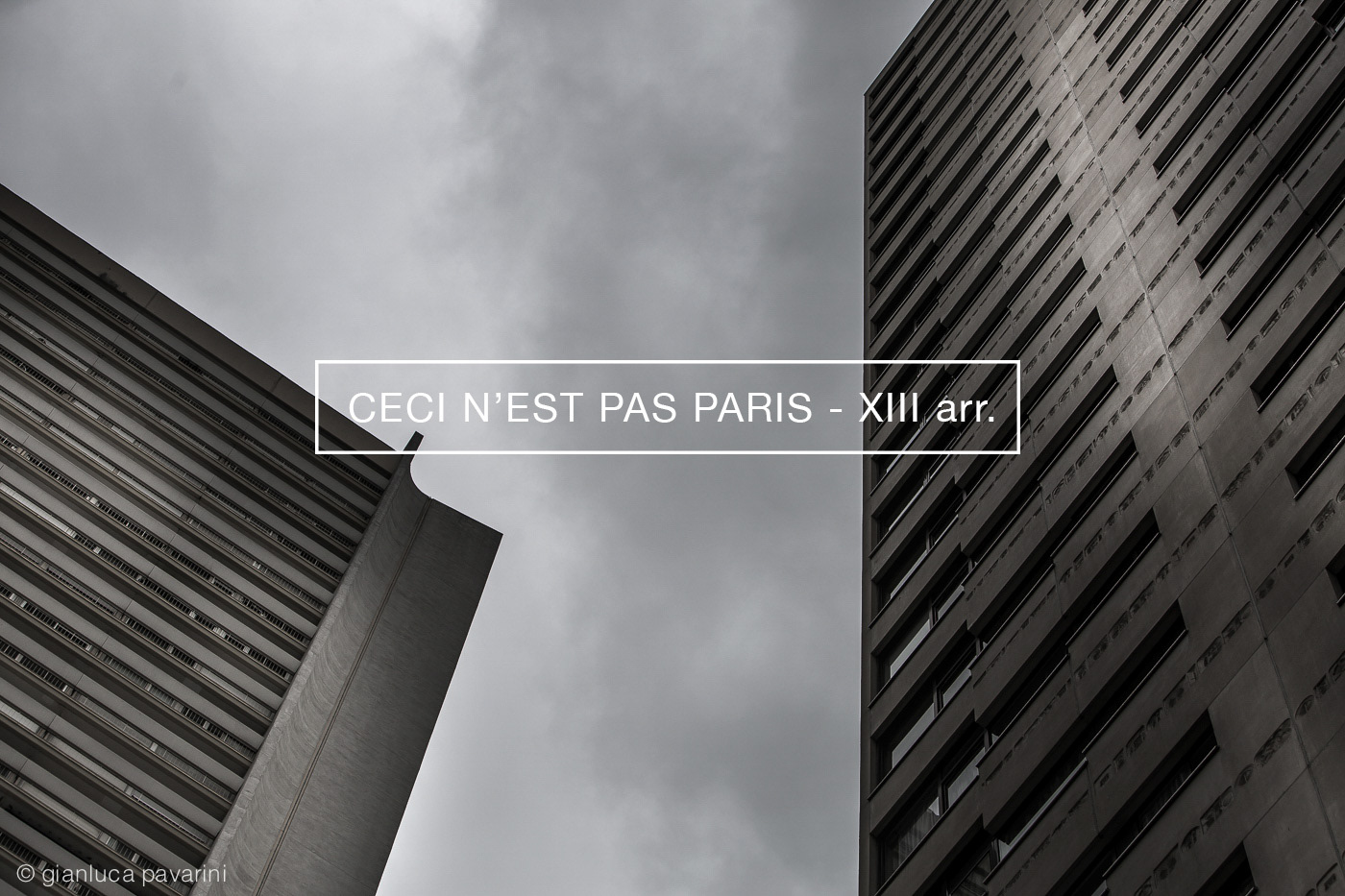 Italie 13 (ou Italie XIII) est le nom d’une vaste opération d’urbanisme engagée à Paris dans les années 1960 et interrompue au milieu des années 1970. Son objectif était de transformer en profondeur certains quartiers du 13earrondissement, autour de l’avenue d’Italie dont elle a tiré son nom. De cette opération, partiellement mise en œuvre, datent les nombreuses tours du sud de l’arrondissement et en particulier le quartier des Olympiades. (Wikipédia) Ceci n’est pas Paris est un projet qui vise à mettre en évidence les opération urbanistique qui ont une esthétique discutable, dans la capitale de la beauté.